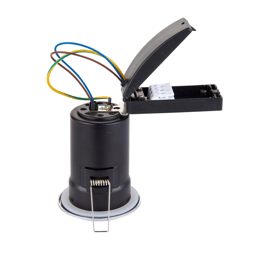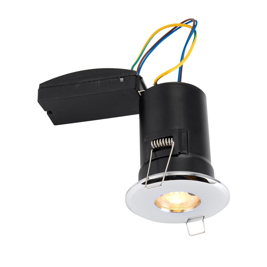 A polished chrome fixed downlight from our fire rated ShieldPLUS range. A simple, attractive design featuring a push fit screwless installation and an IP65 rating make it both easy to fit and suitable for use in the bathroom. Other finishes and options available.| Projection | 0.5cm/0.2" |