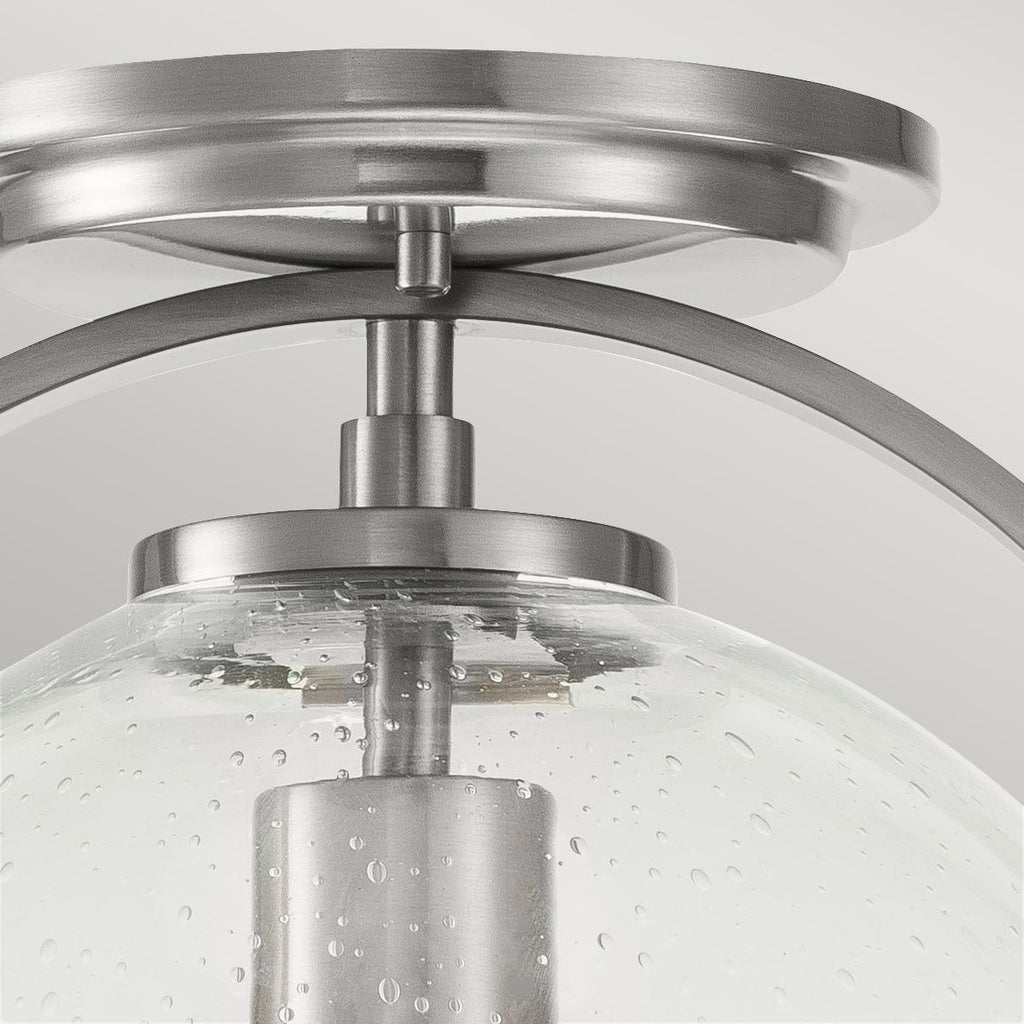 Enhance your living room or bedroom with the Somerset 1 Light Nickel/Clear Flush Ceiling Light—a perfect blend of modern sophistication and timeless charm. Featuring clear seedy glass elegantly suspended within a sleek, brushed nickel frame, this fixture delivers both style and substance. Subtle, turned metal accents lend an authentic touch, making it an ideal choice for those who appreciate refined design details. Available in Heritage Brass, Brushed Nickel, and Black finishes, the Somerset collection offers versatile options to complement any décor. Shop with confidence from the UK’s leading lighting specialists and enjoy free 90-day UK returns on your purchase.| Height | 31.8cm/12.5" |
