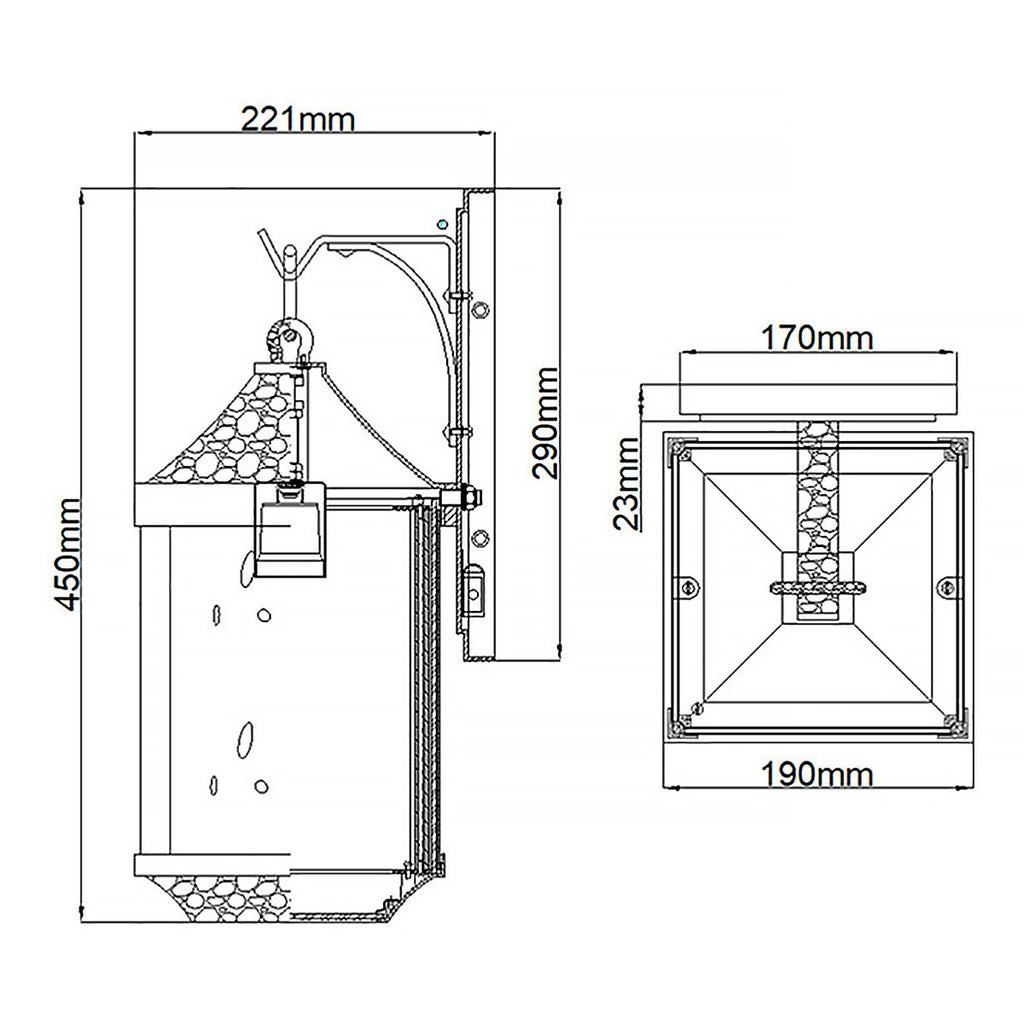 Elevate your outdoor space with the Springfield 1 Light Medium Outdoor Wall Lantern. Crafted from weathered-effect aluminium, this lantern combines timeless elegance with exceptional durability. The hammered metal design and Distressed Black finish add unique texture and character to every fixture, while the seeded glass gently diffuses light for a warm, inviting glow. Rated IP44 for reliable outdoor performance. Shop with confidence from the UK’s leading lighting specialists and enjoy free 90-day UK returns.| Projection | 22.1cm/8.7" |