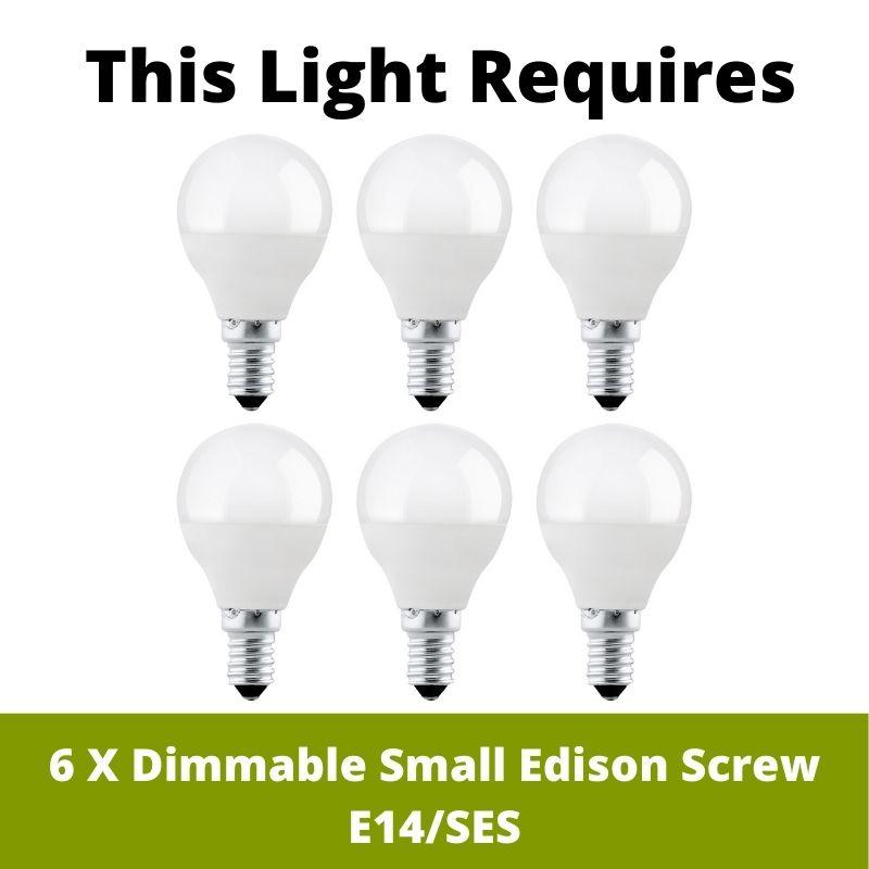 | Light Bulbs | 6 X LED E14 (60W Equivalent) |