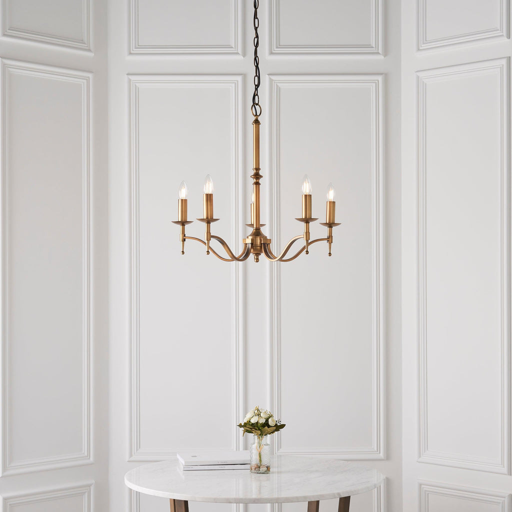 Stanford 5 Light Antique Brass Finish Chandelier CA1P5B