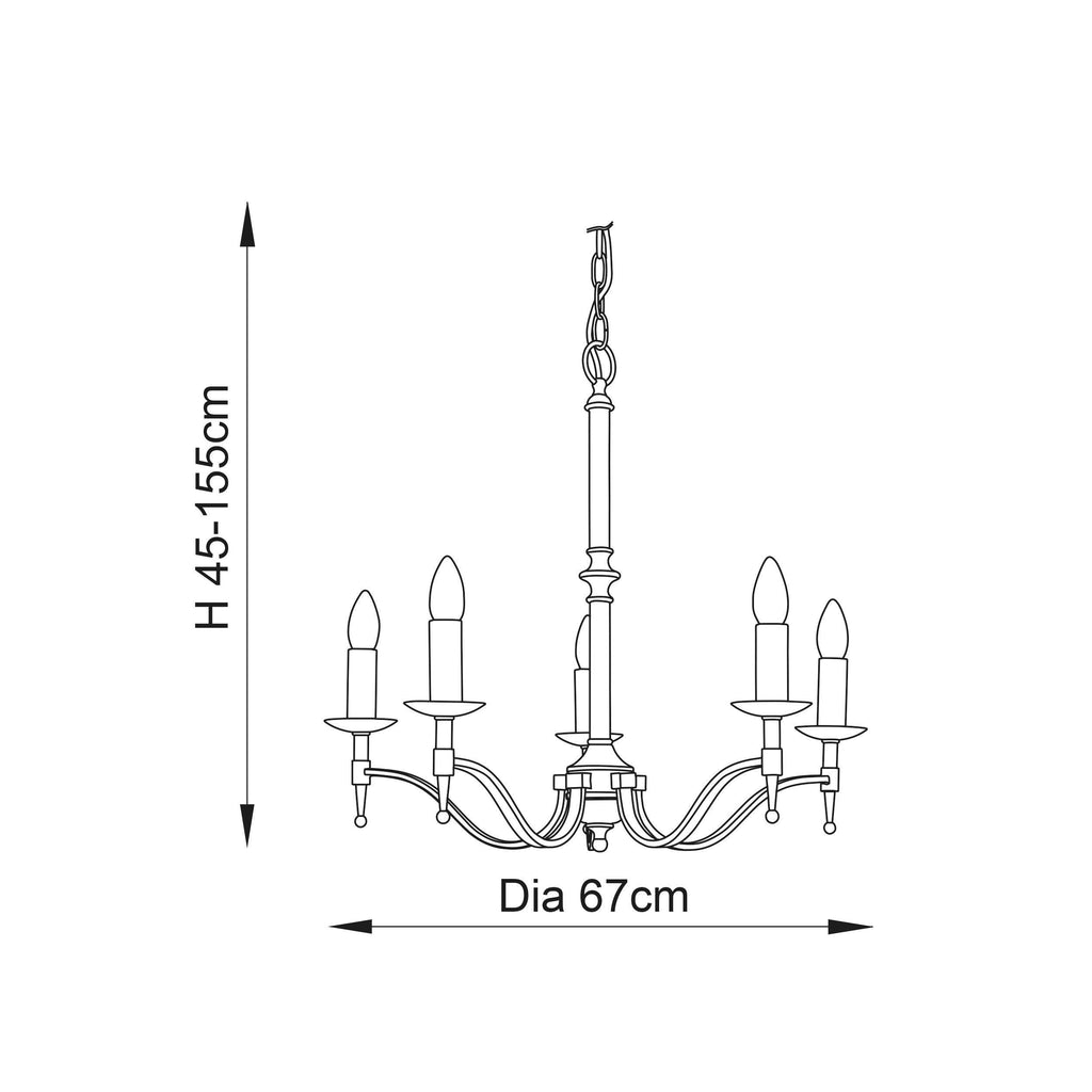 The Stanford brass chandelier range by Interiors 1900 has firmly cemented itself as a classic in traditional lighting. Available in antique brass or polished nickel finish, this range comes with or without shades. This brass chandelier is fully adjustable allowing you to fit it perfectly in your home and can be used with LED lamp bulbs.