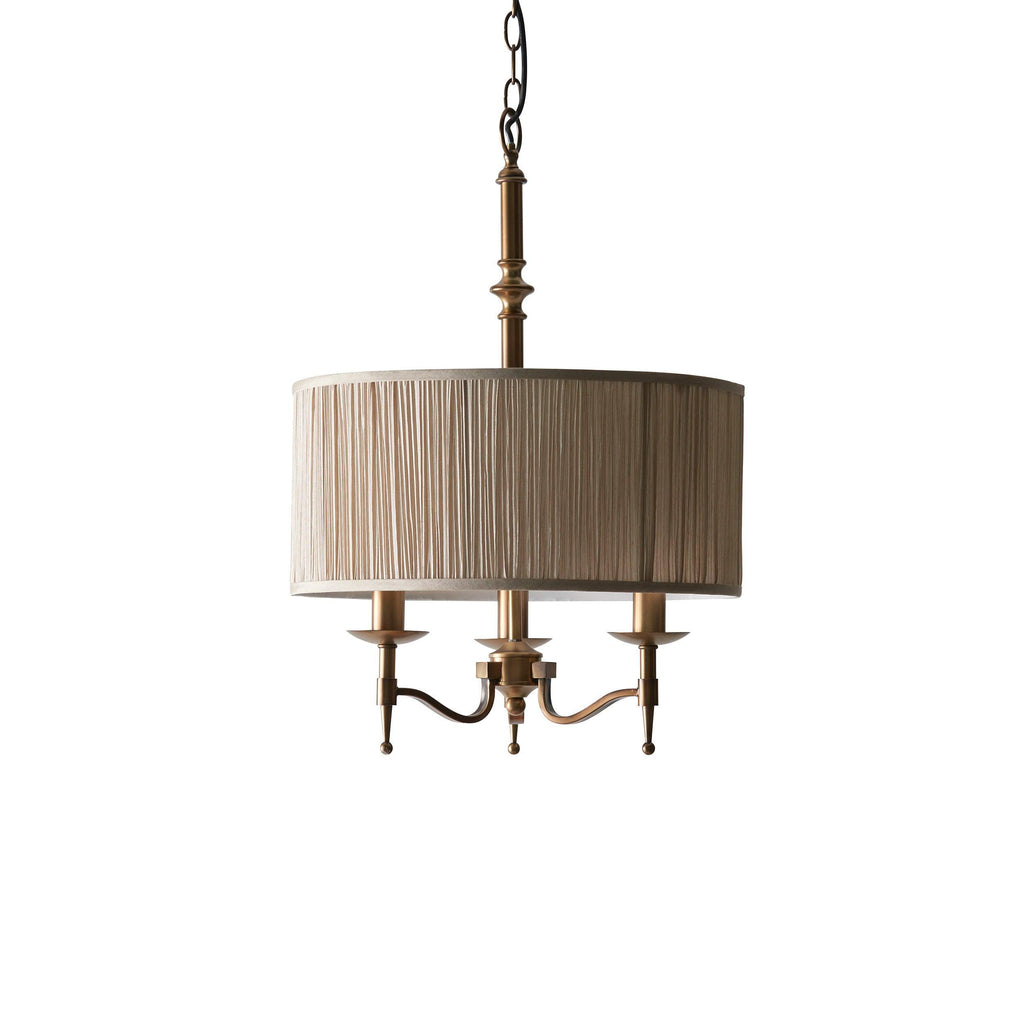 Illuminate your living room with the Interiors 1900 Stanford Pendant. The contemporary design boasts an antique brass finish for a touch of elegance. Enjoy a soft and inviting ambiance with its three lights. Perfect for adding a touch of sophistication to any room.