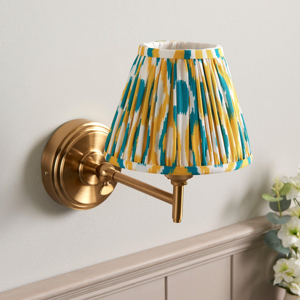 Step Fold Brass Wall Light & Ikat 16cm Yellow & Jade Shade