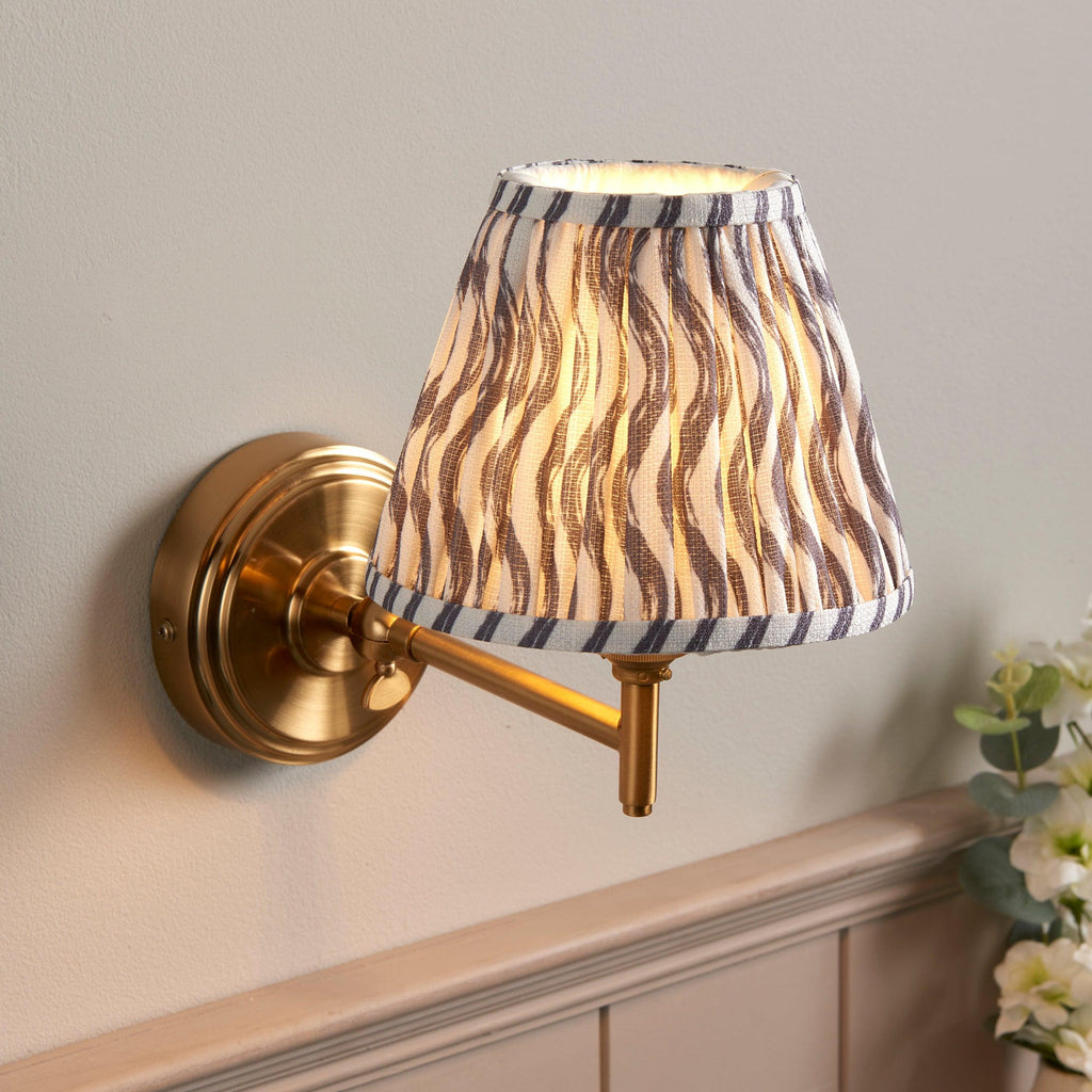 Step Fold Brass Wall Light & Ripple 16cm Pearl Grey Shade