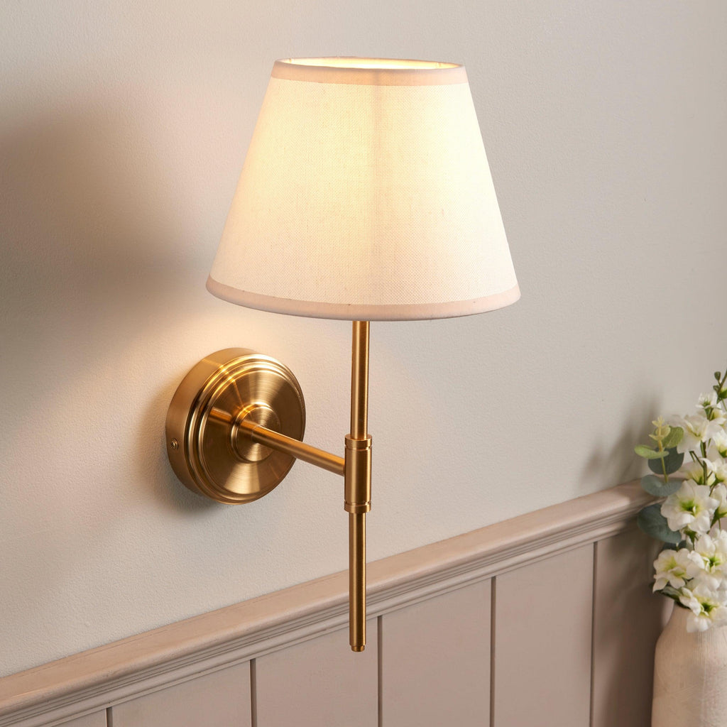 Step T Bar Brass Wall Light & Ivy 20cm Vintage white Shade