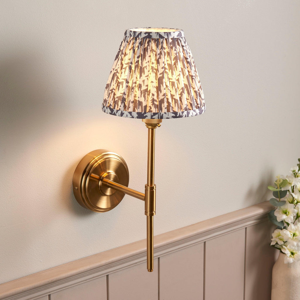 Step T Bar Brass Wall Light & Leaf 16cm Pearl Grey Shade