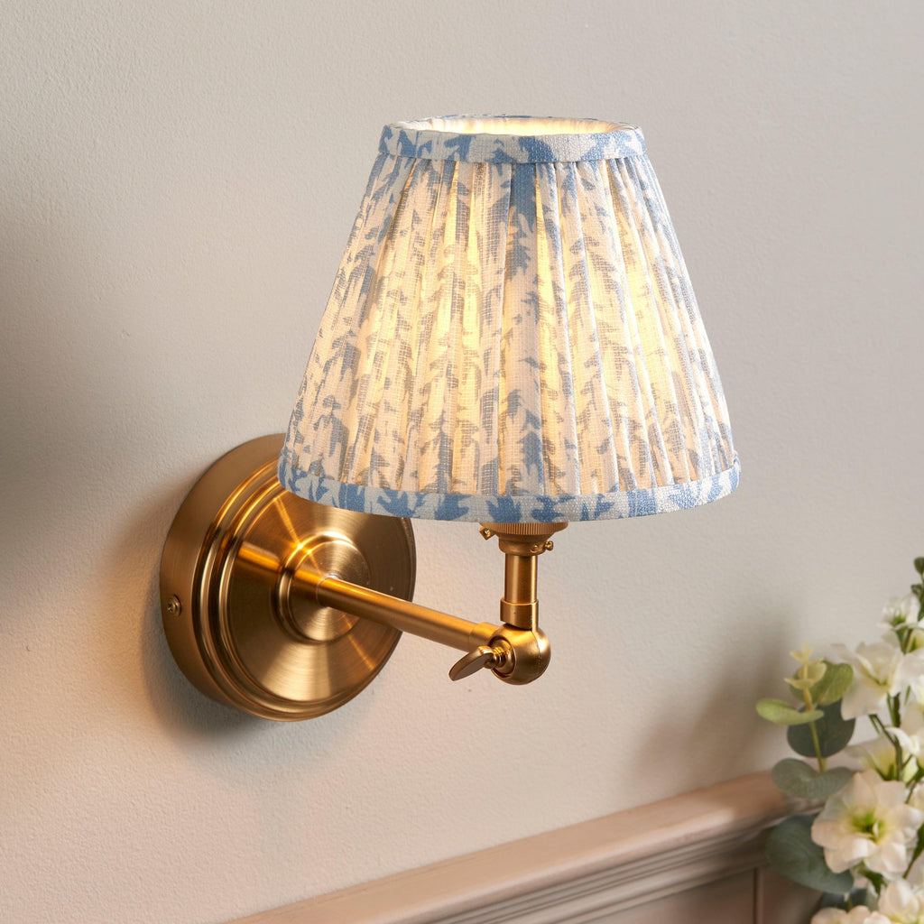 Step Wing Brass Wall Light & Leaf 16cm Shell Bay Blue Shade