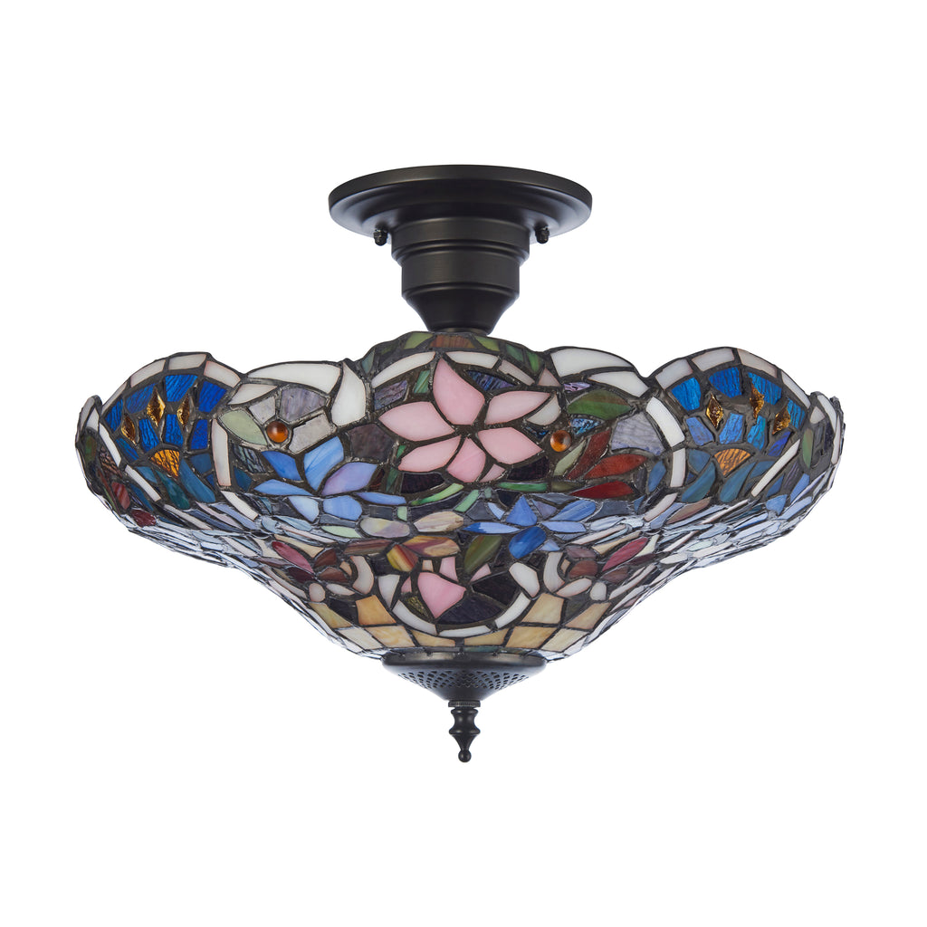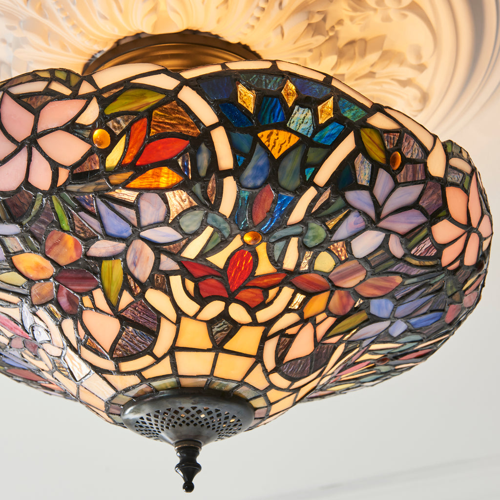 Experience the stunning beauty of the Sullivan Semi-Flush Tiffany Stained Glass Ceiling Light. With its unique and detailed design, this light fixture will add a burst of colour to your living room, creating a warm and inviting atmosphere. Elevate your home decor with this timeless piece.