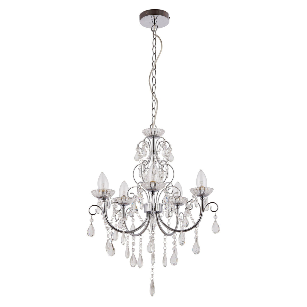 Tabitha Clear Crystal Glass And Chrome Finish 5 Light Bathroom Ceiling Pendant Light 61384