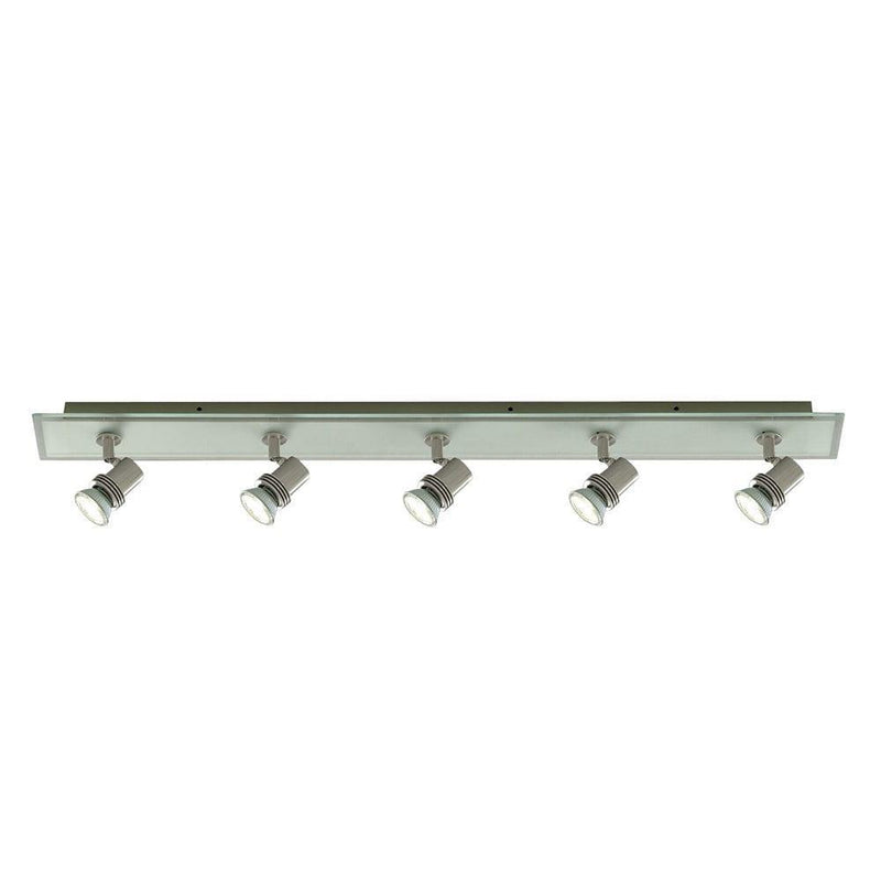 Top Hat 5 Lt Bar Silver Adjustable Spotlights - Glass Backplate