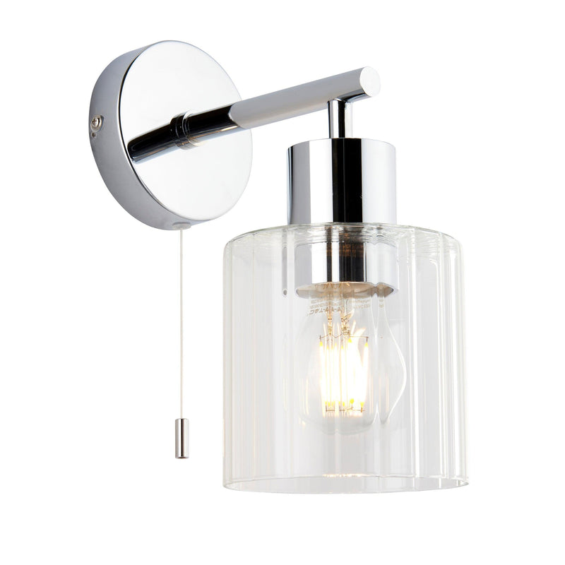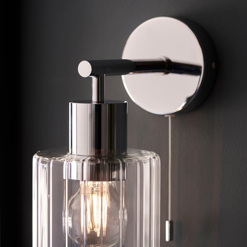 Torbay Chrome & Glass Shade Bathroom Wall Light - Pull Cord
