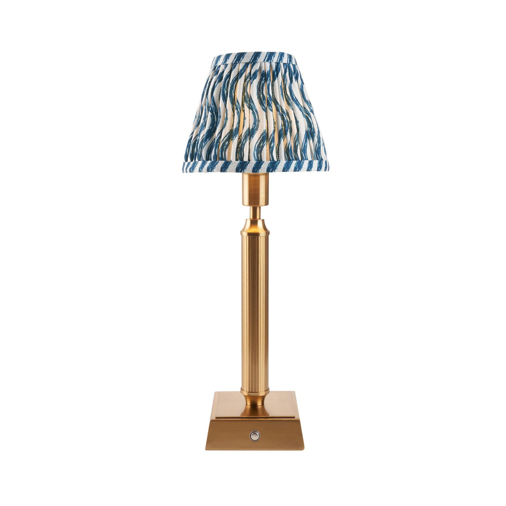Introducing our portable, rechargeable 3-stage touch dimmer table lamp—your perfect lighting solution for any space in your home. Free from the constraints of a power cable, this lamp allows you to effortlessly select your desired light level, making it ideal for cozy reading sessions in the living room or creating the perfect ambiance for dining. With its classic design featuring a reeded stem and a square base, finished in elegant aged brass, this lamp seamlessly complements any decor. The intuitive touch control lets you start with a soft glow, then easily increase the brightness to medium and finally to bright, ensuring you have the perfect lighting for every occasion. Enjoy up to 30 hours of continuous light on a full 5-hour charge, making it a truly versatile addition to your home. Whether placed on shelves, in hallways, beside your bed, or on dining tables, this lamp is designed to enhance your living space. For an added touch of style, pair it with our vibrant marlin blue 16cm Ripple decorative clip-on shade, creating a timeless look that will elevate any room. Shop with confidence knowing we offer secure delivery, easy returns, and a safe online shopping experience. Illuminate your home with this exquisite lamp today!| Height | 41.4cm/16.3" |