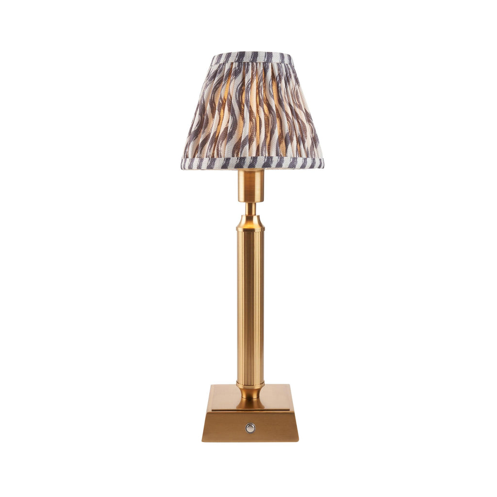 Introducing our portable, rechargeable 3-stage touch dimmer table lamp—your perfect lighting solution for any room in your home. Free from the constraints of a power cable, this lamp allows you to effortlessly select your desired light level, making it ideal for cozy reading sessions in the living room or creating the perfect ambiance for dining. With its classic design featuring a reeded stem and a square base, finished in elegant aged brass, this lamp seamlessly complements any decor. Simply touch the lamp to turn it on at a low light setting, then tap again to increase the brightness to medium and finally to bright, providing you with the flexibility to adjust the lighting to suit your needs. Designed for convenience, the lamp fully charges in just 5 hours and offers up to 30 hours of continuous light, making it a reliable companion for any occasion. Whether placed on shelves, in hallways, beside your bed, or on dining tables, this versatile lamp enhances your space with style and functionality. For an added touch of elegance, pair it with our chic pearl grey 16cm Ripple decorative clip-on shade, creating a timeless look that elevates your home decor. Shop with confidence knowing we offer secure delivery, easy returns, and a safe online shopping experience. Illuminate your home with this exquisite lamp today!| Height | 41.4cm/16.3" |