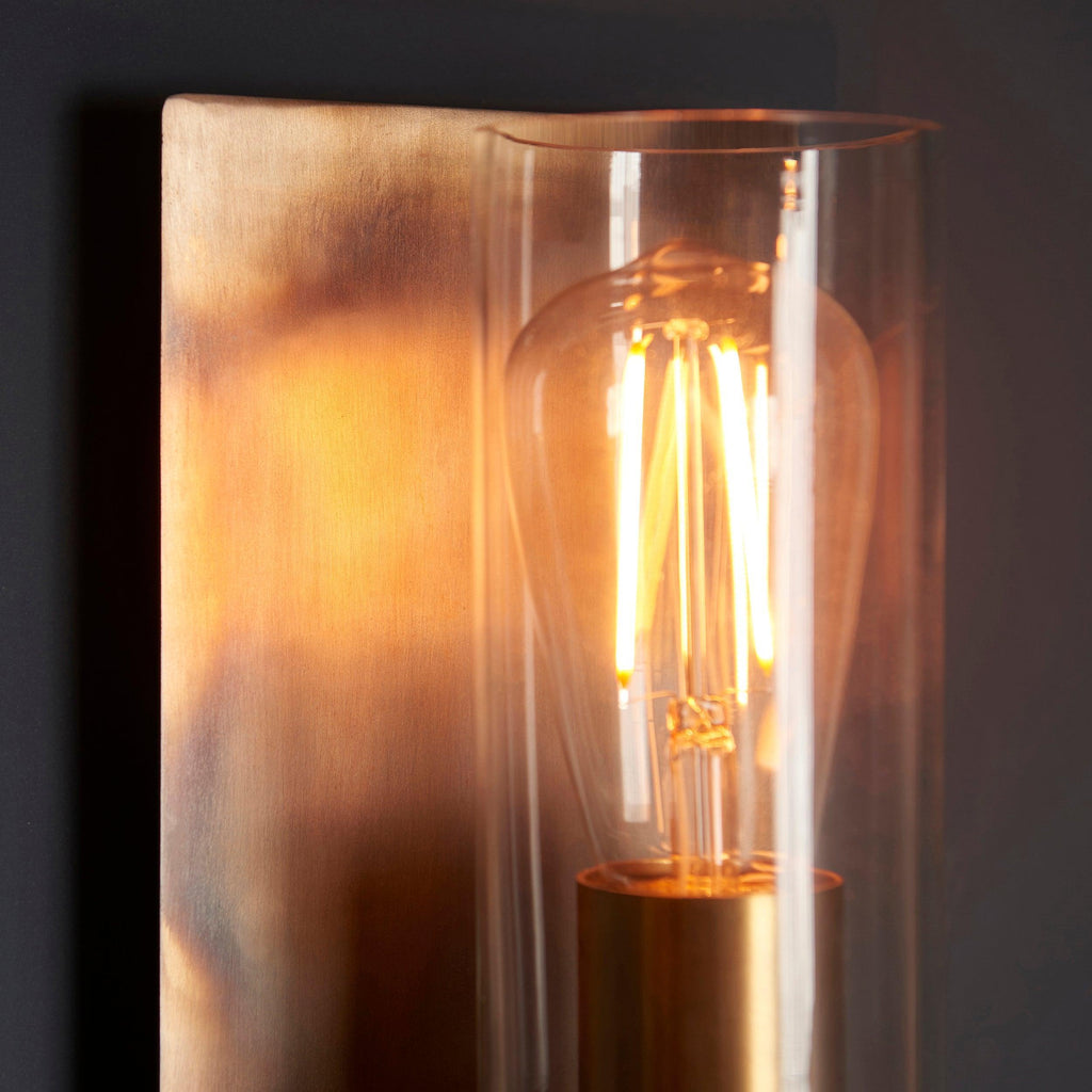 Vauxhall Modern Brass Patina Wall Light - Glass Shade