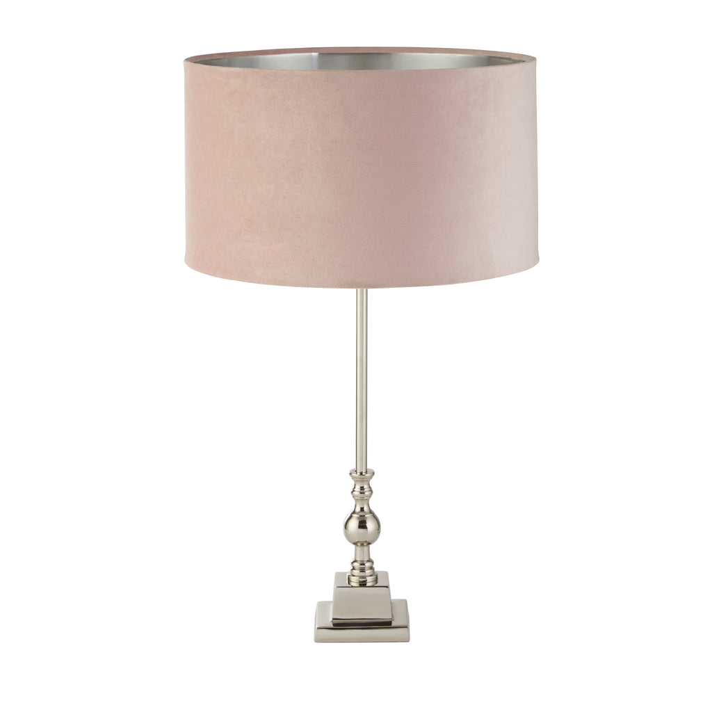 Whitby Table Lamp - Chrome Metal & Pink Velvet Shade