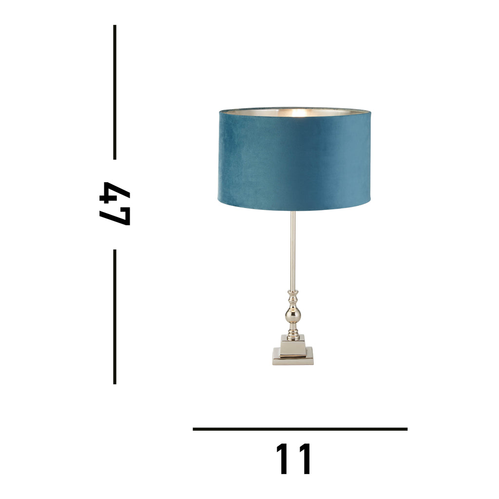 Whitby Table Lamp - Chrome Metal & Teal Velvet Shade