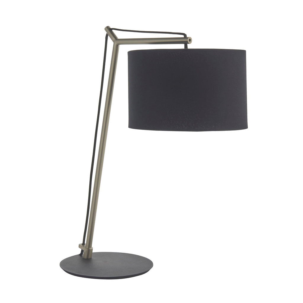 This cantilevered table light is inspired by architectural forms and brings instant contemporary style and a refined aesthetic. The black cotton shade is suspended from a choice of matt brass or matt nickel metalwork with a matt black base, adding modern design symmetry. Combine with matching items in the range for a cohesive look.