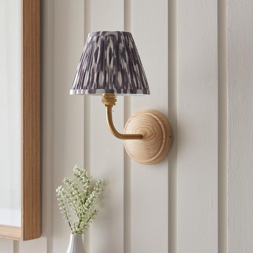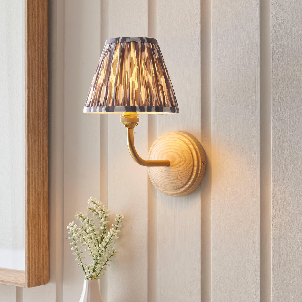 Introducing our exquisite natural Ash wood wall light, featuring a gracefully curved arm and a stunning brushed aged brass finish. This timeless design effortlessly enhances any space, making it the perfect addition to your home. Paired with our elegant pearl grey 16cm Ikat shade, this wall light not only illuminates your room but also adds a touch of sophistication. To elevate your interior design, explore our coordinated bedroom lighting range, where you’ll find complementary pieces that harmonize beautifully with this wall light. Create a cohesive and stylish atmosphere throughout your bedroom with our carefully curated selection. We prioritize your shopping experience, offering secure delivery and hassle-free returns, ensuring that you can shop with confidence. Enjoy a safe online shopping experience with us, knowing that your satisfaction is our top priority. Illuminate your space with style and ease today!| Projection | 22.5cm/8.9" |