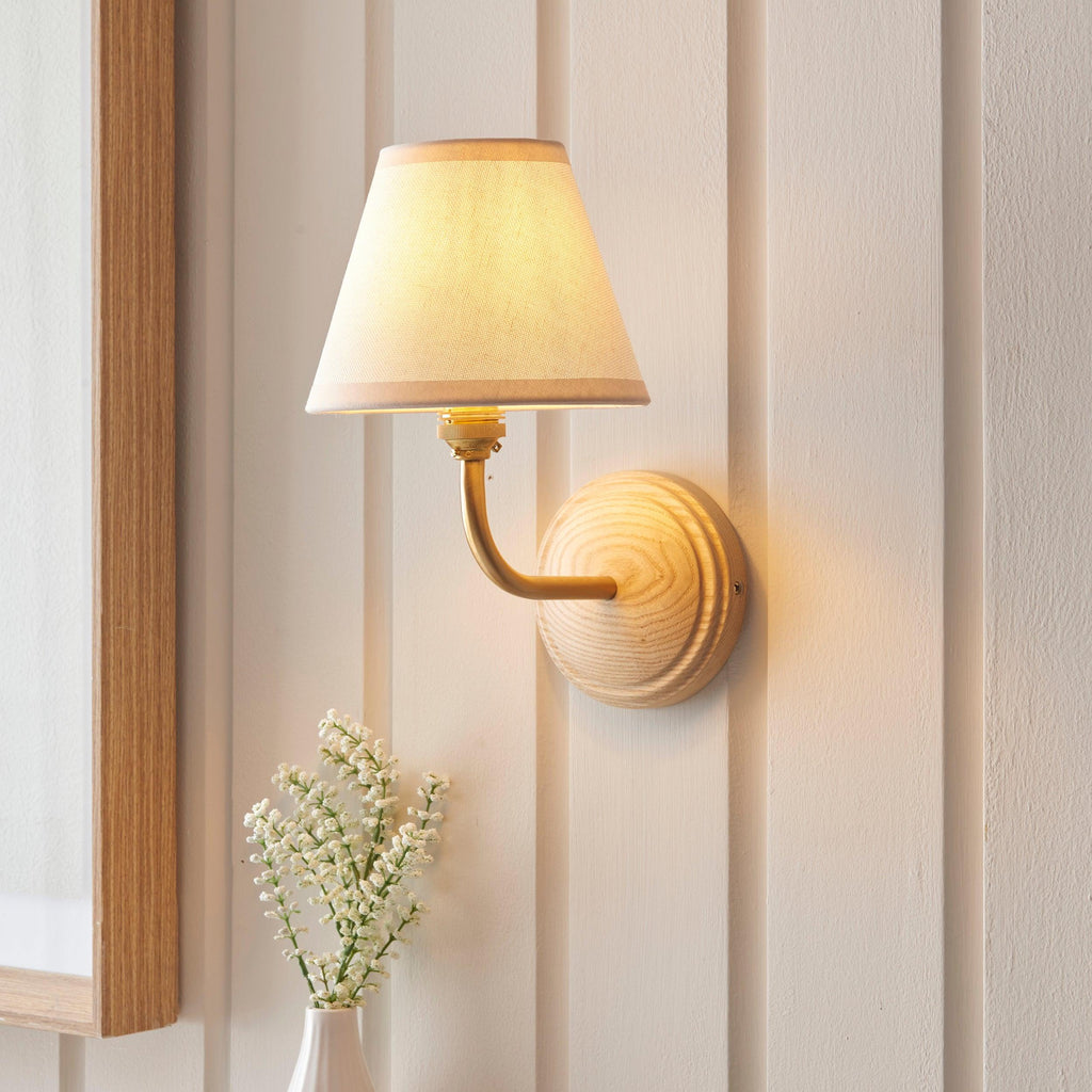 Introducing our exquisite natural Ash wood wall light, featuring a gracefully curved arm and a stunning brushed aged brass finish. This timeless design effortlessly enhances any space, making it the perfect addition to your home. Paired with our elegant vintage & almond white 16cm Ivy shade, this wall light not only illuminates your room but also adds a touch of sophistication. To elevate your bedroom ambiance, explore our coordinated lighting range, designed to complement this wall light beautifully. Create a cohesive and inviting atmosphere with our carefully curated selection of fixtures that harmonize perfectly with your decor. We prioritize your shopping experience, offering secure delivery and hassle-free returns, ensuring your satisfaction every step of the way. Shop with confidence, knowing that your online purchase is safe and protected. Illuminate your home with style and ease today!| Projection | 22.5cm/8.9" |